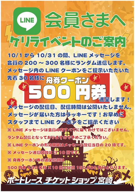 【舟券クーポン500円券】の進呈は1回のメッセージ配信につき30名様を上限とさせていただきます。