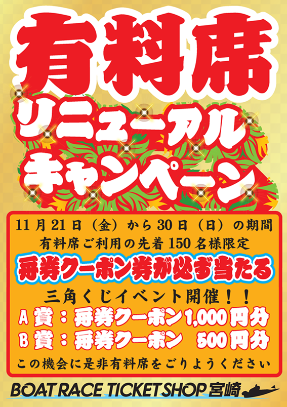 【A賞:舟券クーポン1,000円分・B賞:舟券クーポン500円分】を進呈いたします!!