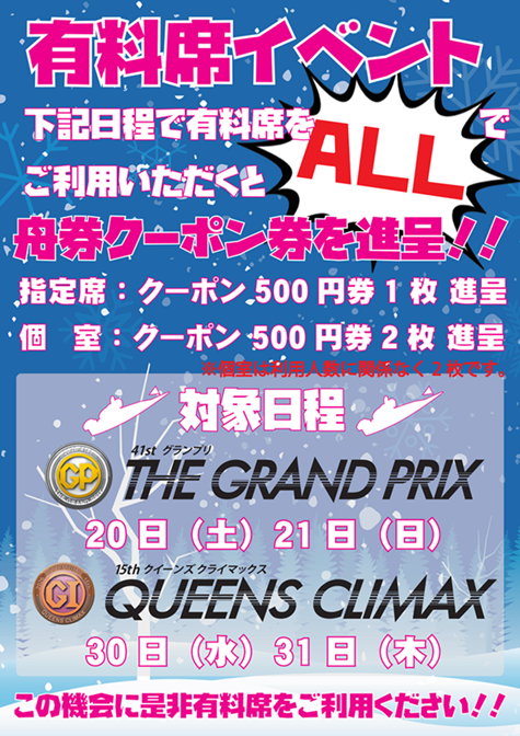 有料席を【ALL】でご利用のお客様へ【舟券クーポン券】をプレゼント!!