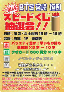 スピードくじ抽選会のお知らせ※毎月第2第4土曜日を予定